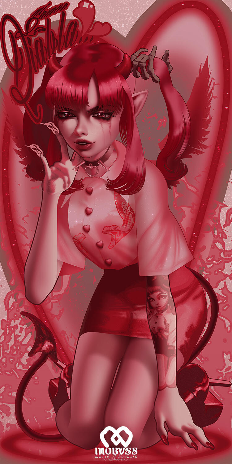 Opposition is rarely met without friction. Depression has been both catalyst and barrier in Marie’s journey, and art remains the way she translates her soul into visual form. She wants viewers to fall into fantasy and feel the electric frenzy of pieces like MOBVSS Monster or La Diabla, while encountering the quiet hardships of mental illness within her Melancholic series. As she grows, Marie hopes to expand into promotional opportunities and future exhibits. Above all, she wants her work to live in the world and invite others into the way she sees and feels.